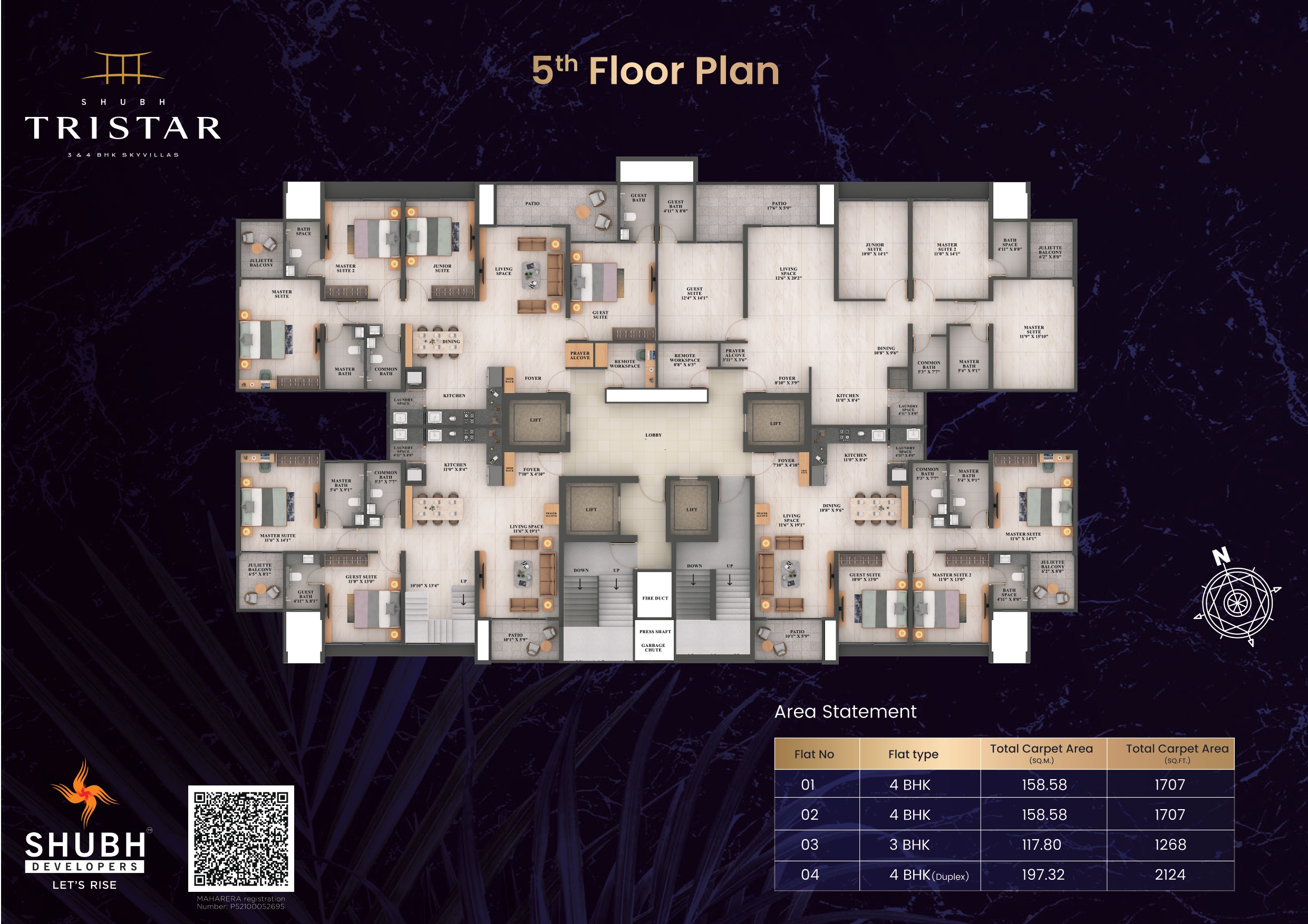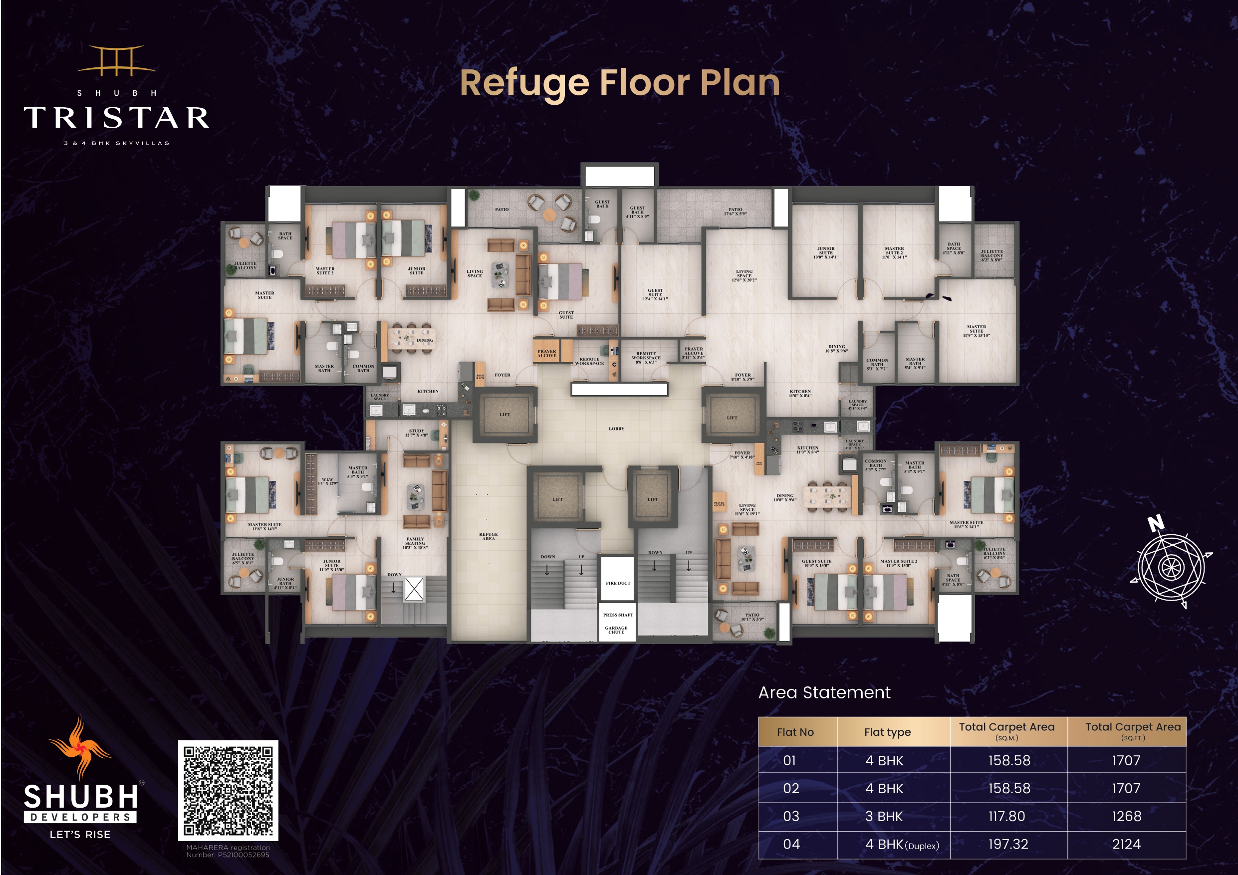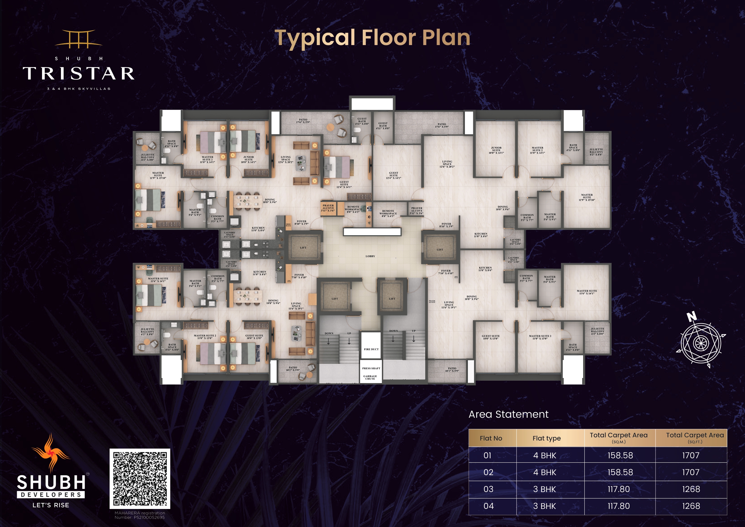 Explore the officially designed Shubh Tristar floor plan for our 3 & 4 BHK residences. Click on any layout below to request high-resolution floor plan details and exclusive pricing.